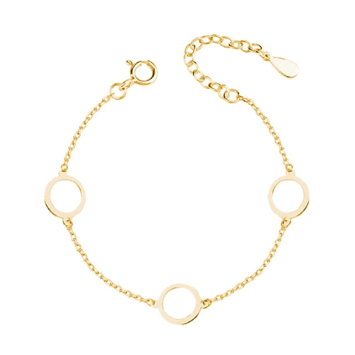 Bransoletka z motywem kółek o regulowanej długości 16-19cm. Wykonana ze srebra 925 i pokryta złotem