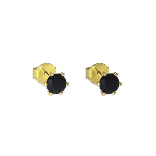 Kolczyki z czarną cyrkonią zapinane na sztyft. Wykonane ze srebra 925 i pokryte złotem