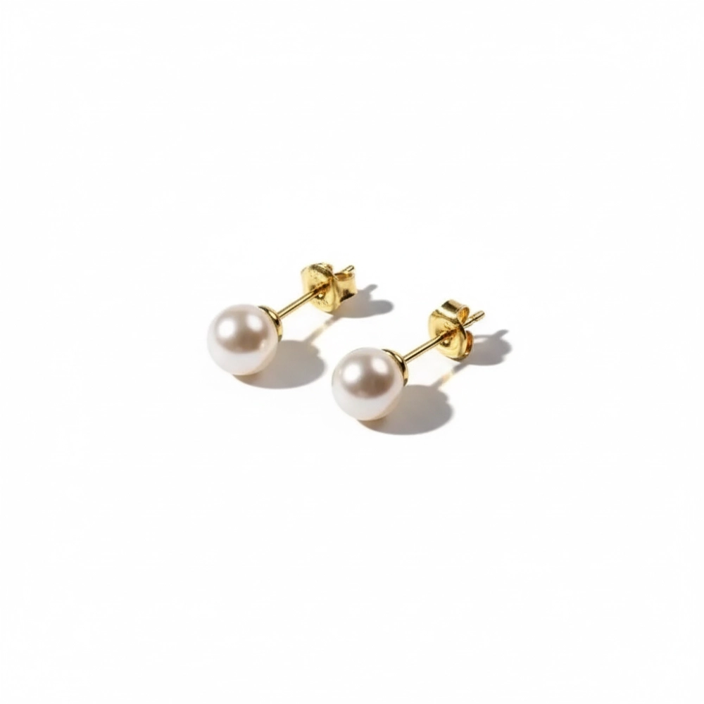 Kolczyki z perłami 6mm. Na sztyft, pozłacane