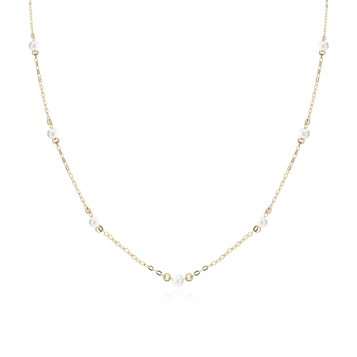 Ten naszyjnik choker z perłami wykonany ze srebra 925 pozłacanego to biżuteria, która łączy ponadczasową elegancję z nowoczesnym trendem. Delikatny łańcuszek ozdobiony subtelnymi perełkami (średnica 3 mm) układa się blisko szyi, podkreślając dekolt i dodając stylizacji kobiecego uroku.