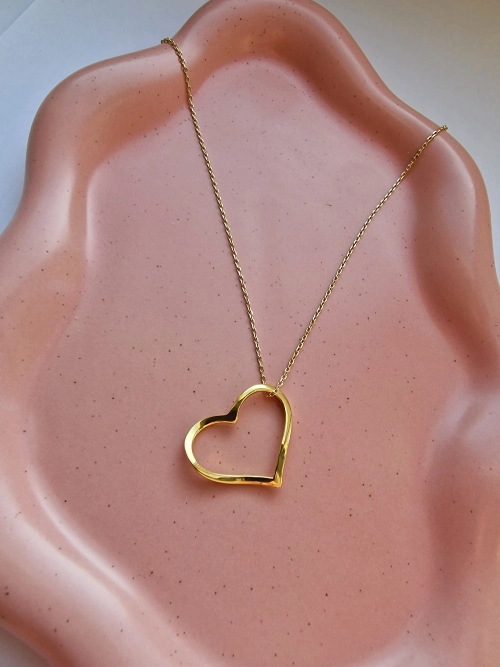 Naszyjnik z dużym, ażurowym sercem to połączenie delikatności, elegancji i emocji – stworzony, by podkreślić kobiecą wrażliwość i wyrazić uczucia.
