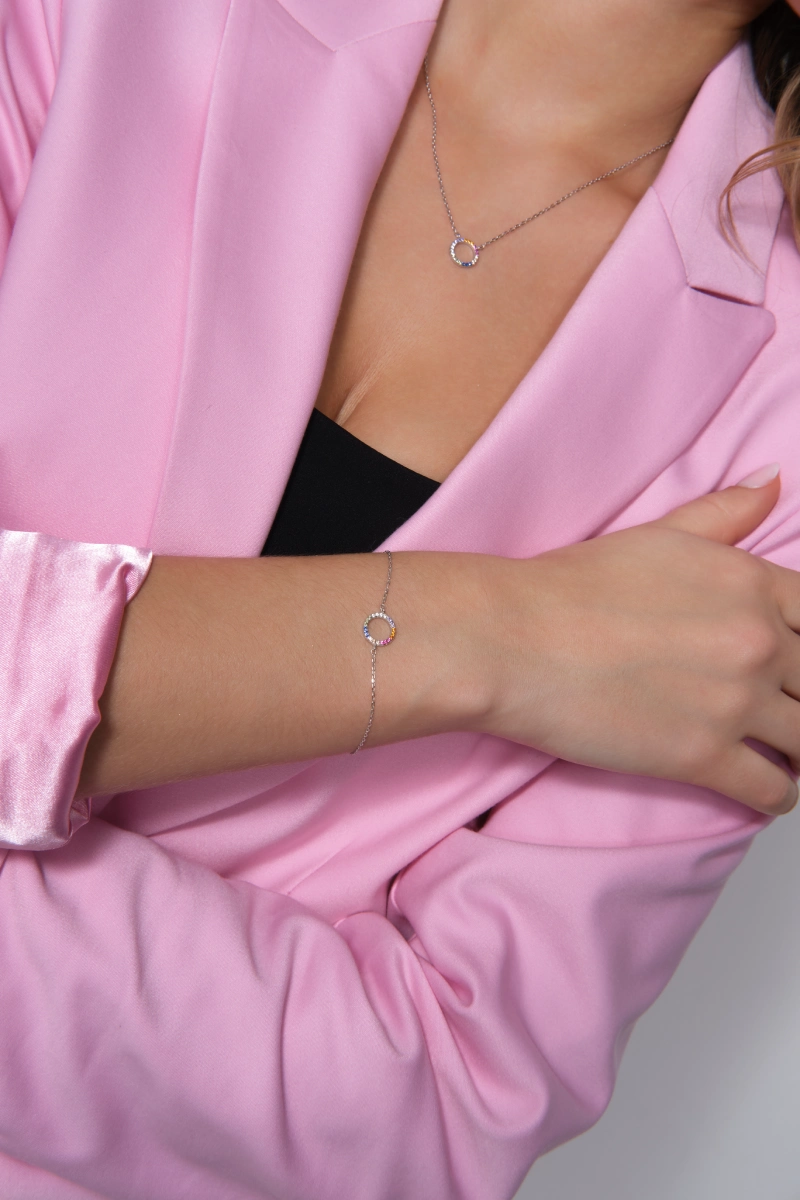 Bransoletka srebrna z kolorowymi cyrkoniami. Tęcza barw na Twoim nadgarstku