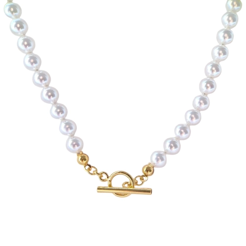 Cudowny naszyjnik z perłami Gavbari 6mm z zapięciem typu toggle. Choker o długości 36cm. Propozycja nowoczesna i ponadczasowa zarazem. Możesz stworzyć zestaw z bransoletką i kolczykami z tym samym wymiarem pereł. Wykonany ze srebra 925 i pozłocony 24k złotem.