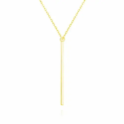 Naszyjnik ze słupkiem to połączenie prostoty, nowoczesnej formy i złocistego blasku, który przyciąga spojrzenia. Geometryczna zawieszka w kształcie podłużnego „słupka” pięknie eksponuje dekolt, dodając elegancji każdej stylizacji. Wykonany ze srebra 925 i pokryty złotem.