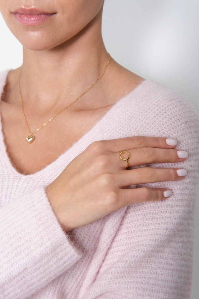 Czasem mniej znaczy więcej – i ten pierścionek jest na to złotym dowodem! Delikatna obrączka ze srebra 925, pokryta 24-karatowym złotem, ozdobiona ażurowym kółeczkiem, które symbolizuje nieskończoność, harmonię i… Twój świetny gust.