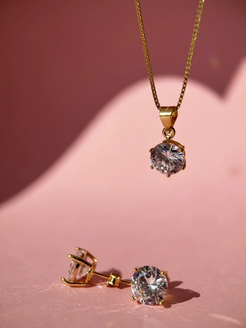 Wykonane z najwyższej jakości srebra próby 925, są niezwykle trwałe i komfortowe w noszeniu. Warstwa złocenia nadaje im ciepły, szlachetny odcień, a centralnie osadzona cyrkonia o średnicy 8 mm imituje diament, lśniąc intensywnym blaskiem, który przyciąga każde spojrzenie. Klasyczna oprawa na 4 łapy dodaje im jubilerskiego charakteru i pewnie utrzymuje kamień.