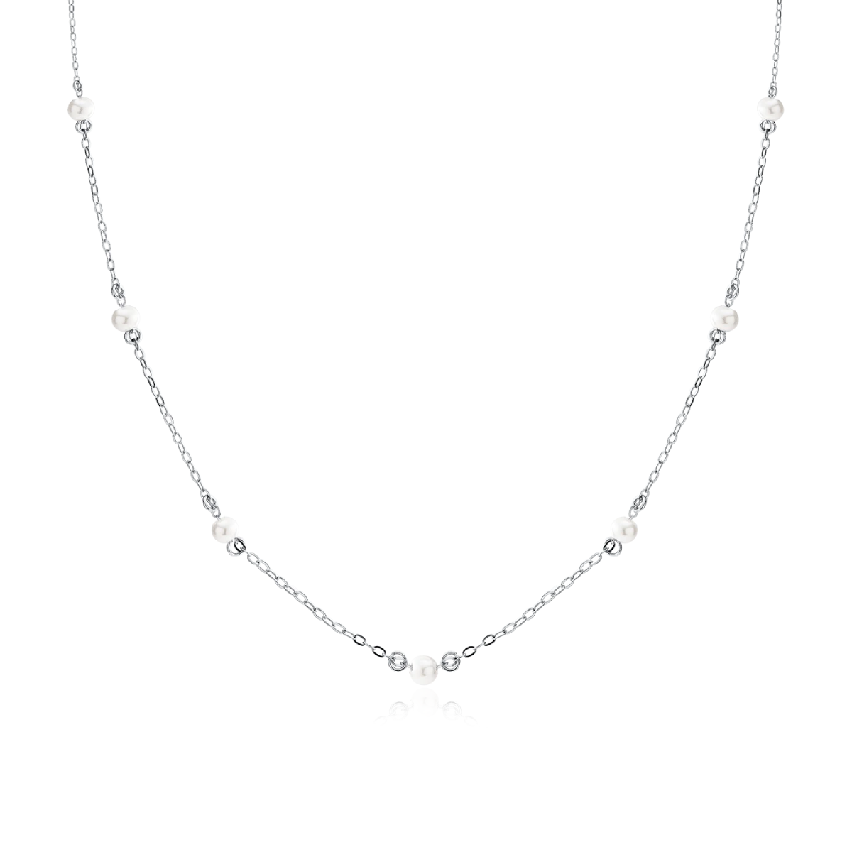 Ten srebrny naszyjnik choker z perłami to połączenie subtelności i świeżości, które podkreślą Twój indywidualny styl. Delikatny łańcuszek ze srebra próby 925 ozdobiony drobnymi perłami (średnica 3 mm) pięknie układa się na szyi, tworząc efekt lekki i kobiecy.